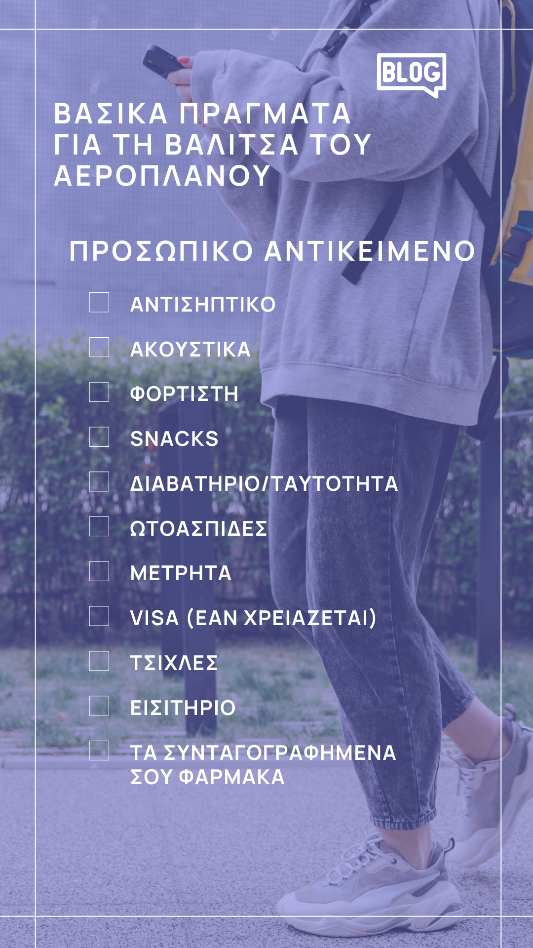 Βασικά πράγματα που πρέπει να έχεις στη βαλίτσα στο αεροπλάνο (προσωπικό αντικείμενο) [Infographic]